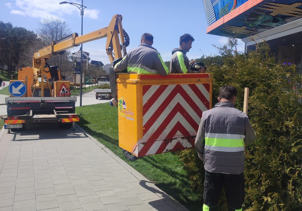 У току су редовне пролећне активности Комуналног јавног предузећа „Златибор“, које обухватају машинско уклањање ризле са улица и тротоара, прање јавних површина, орезивање украсног жбуња, као и фарбање и поправку парковског мобилијара.